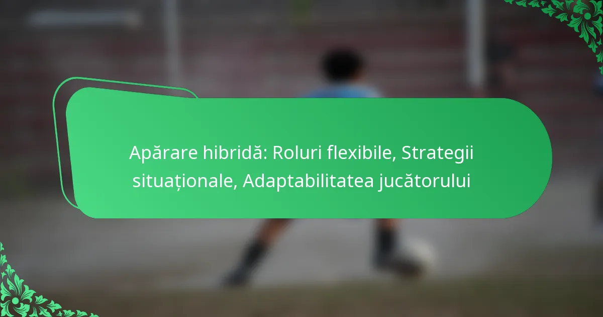 Apărarea hibridă este o abordare strategică dinamică care integrează multiple tactici defensive pentru a răspunde eficient la amenințările și situațiile în evoluție. Prin prioritizarea flexibilității și adaptabilității jucătorilor, această metodă permite membrilor echipei să își schimbe rolurile și responsabilitățile după cum este necesar, asigurând o apărare robustă împotriva diverselor strategii ofensive.