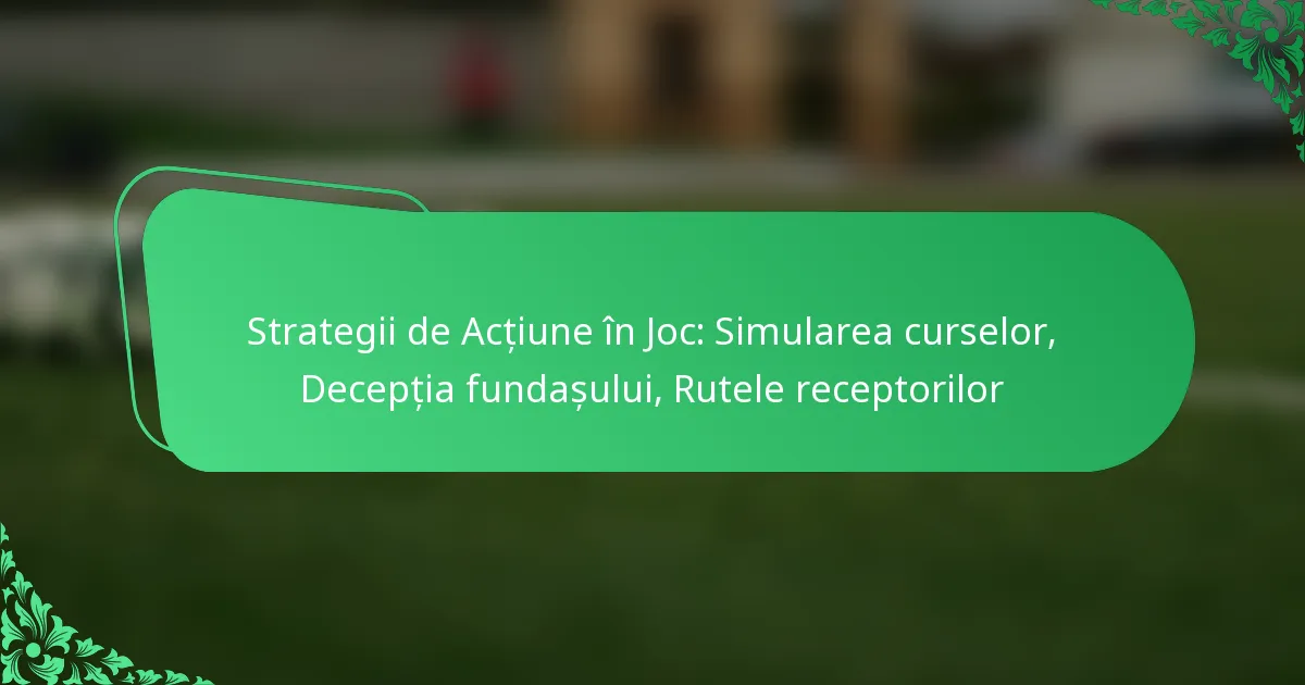 Strategiile de play action în fotbal implică simularea unei curse pentru a înșela apărarea, permițând fundașului să paseze mingea eficient. Această tactică are ca scop crearea de deschideri pentru receptori, făcând ca apărătorii să se angajeze în oprirea cursei, astfel sporind oportunitățile ofensive.